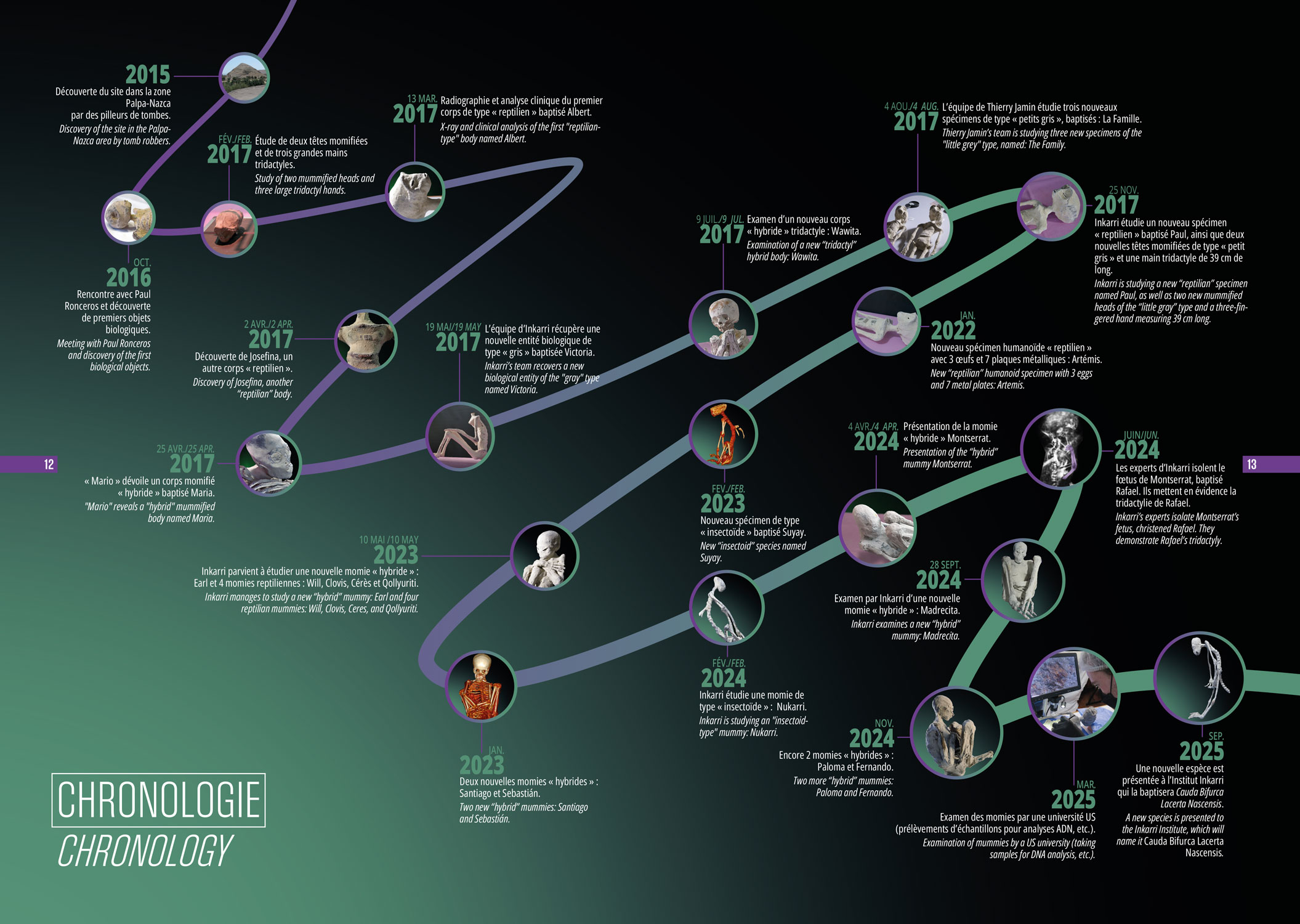 « Avec mon ami Alain Bonnet, gérant de la société Jungle Doc, et mes camarades de l’Institut Inkarri, nous avons voulu dresser un tableau d’ensemble d’une grande partie des restes momifiés mis au jour par “Mario” entre 2015 et 2026. Ils font toujours l’objet de recherches avancées de la part d’équipes de chercheurs, originaires de plusieurs universités mondialement réputées. Le moment viendra de rendre publiques leurs conclusions définitives.